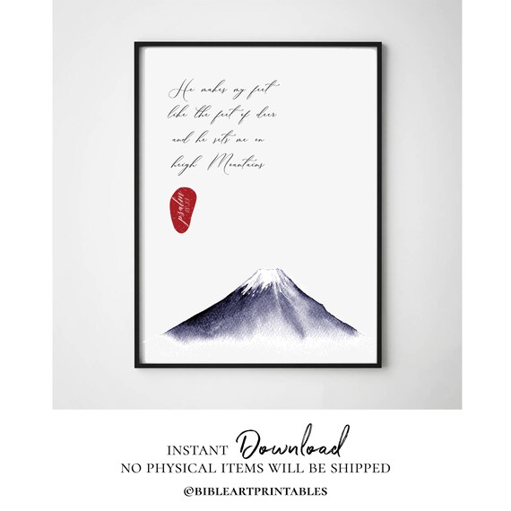 Psalm 18 33 Bible Quote Print Biblical Verses Japanese Fuji Etsy New Zealand