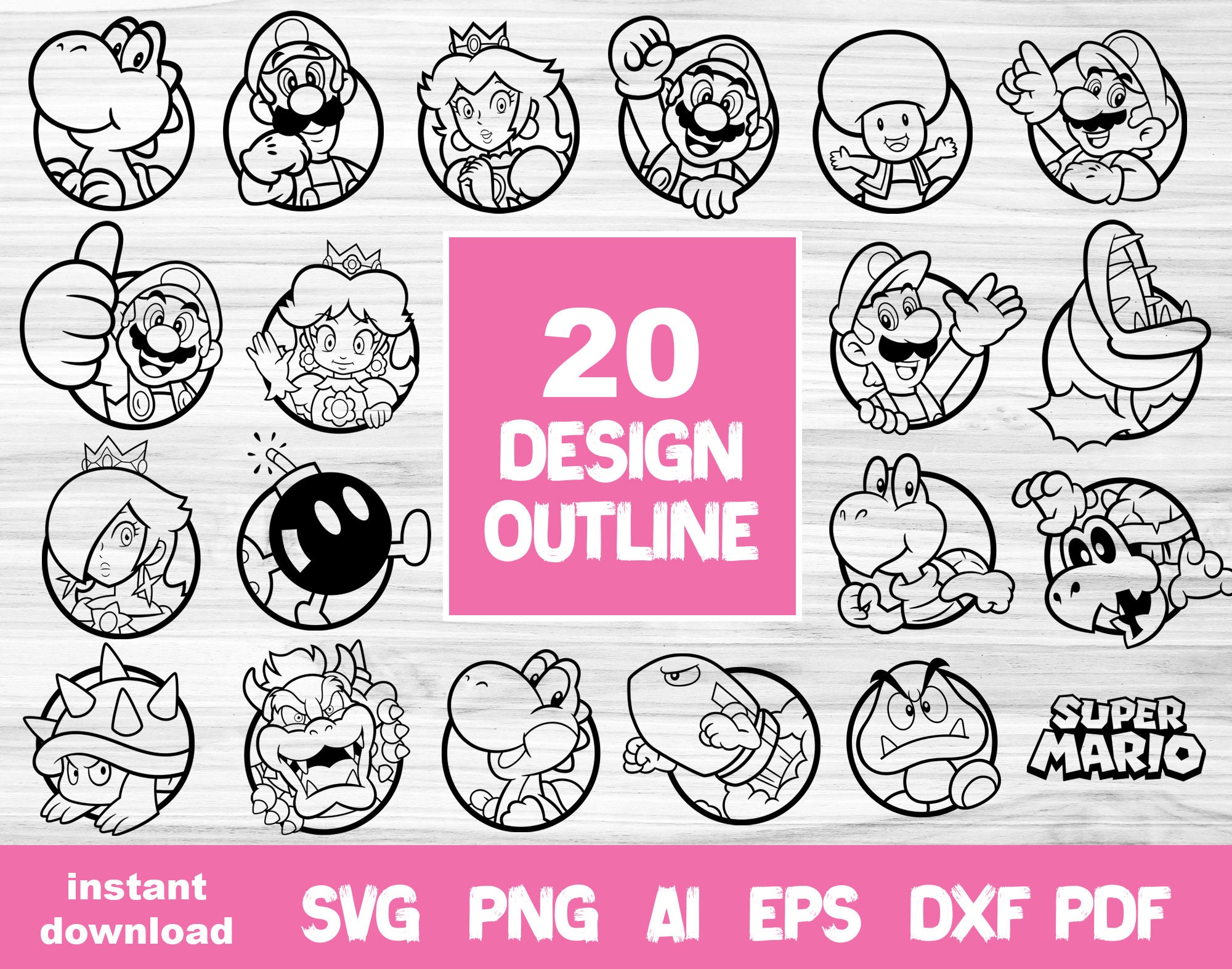 Super Mario Svg Bundle Outline Instant Download Super Mario Etsy